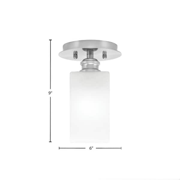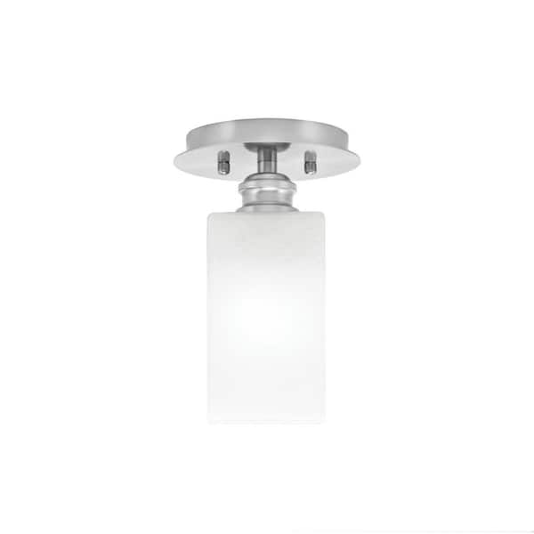 Albany 1-Light 6 in. Brushed Nickel Semi-Flush with Square White Marble Glass Shade