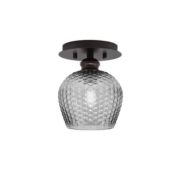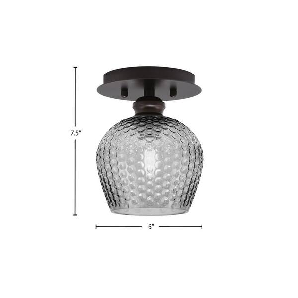 Albany 1-Light 6 in. Espresso Semi-Flush with Smoke Textured Glass Shade