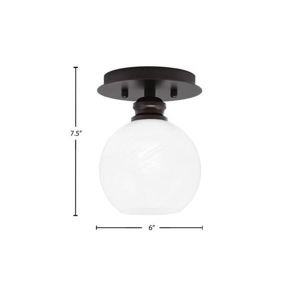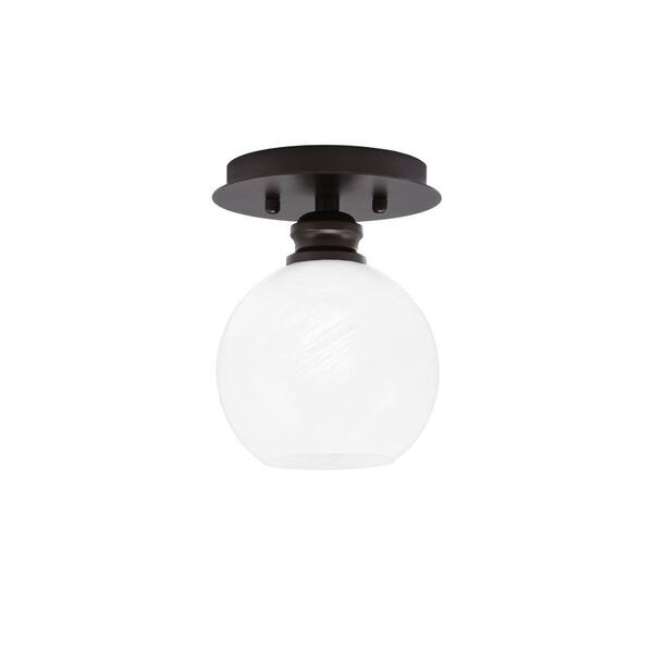 Albany 1-Light 6 in. Espresso Semi-Flush with White Marble Glass Shade