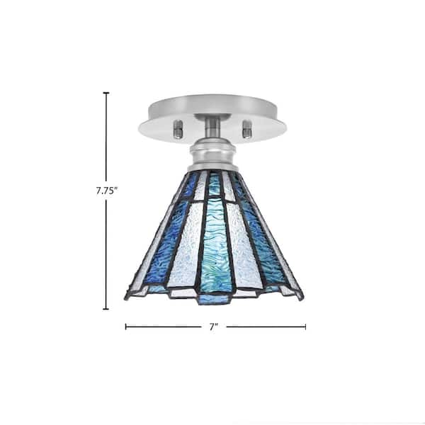 Albany 1-Light 7 in. Brushed Nickel Semi-Flush with Sea Ice Art Glass Shade