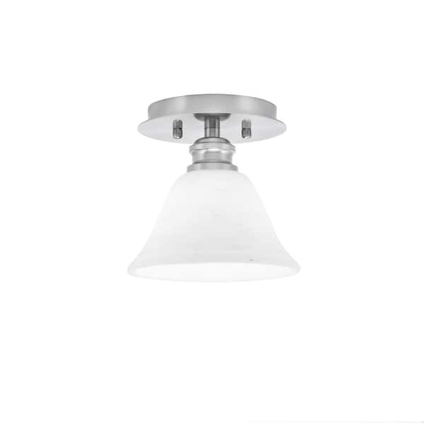 Albany 1-Light 7 in. Brushed Nickel Semi-Flush with White Muslin Glass Shade