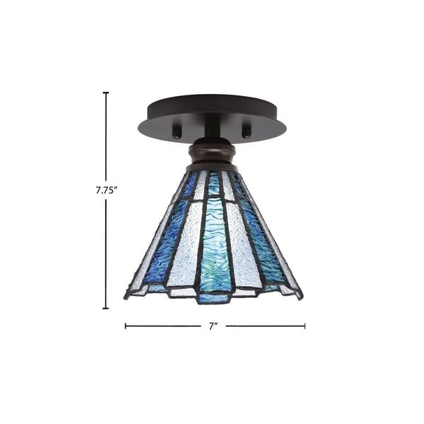 Albany 1-Light 7 in. Espresso Semi-Flush with Sea Ice Art Glass Shade
