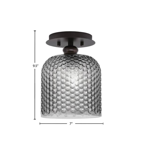 Albany 1-Light 7 in. Espresso Semi-Flush with Smoke Textured Glass Shade
