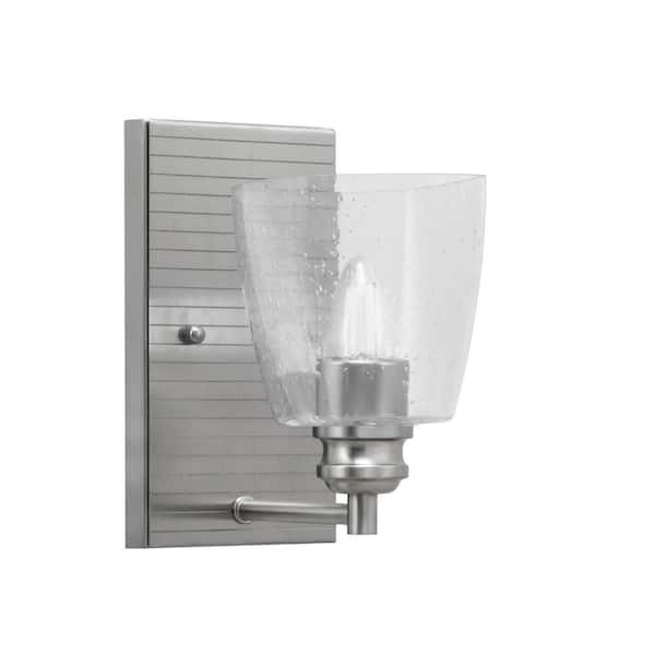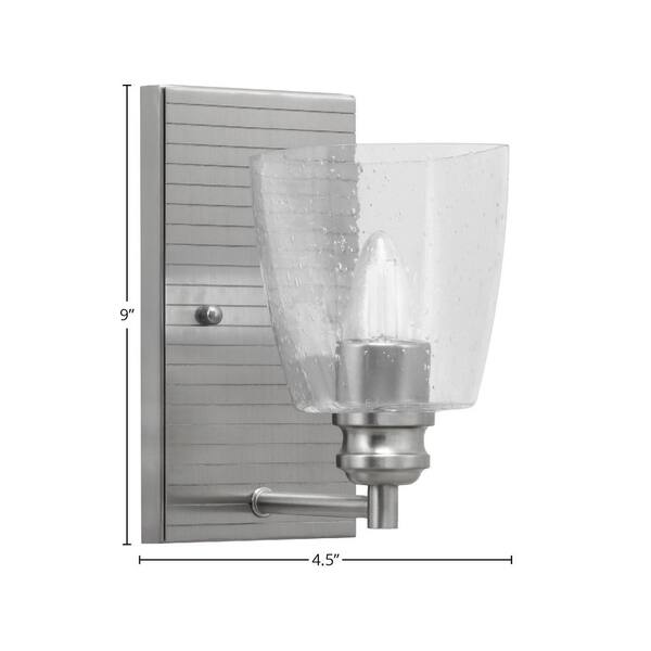 Albany 1-Light Brushed Nickel 4.5 in. Wall Sconce with Square Clear Bubble Glass Shade