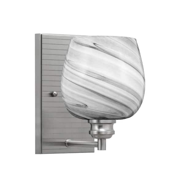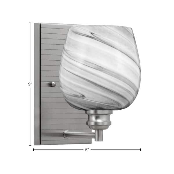 Albany 1-Light Brushed Nickel 6 in. Wall Sconce with Onyx Swirl Glass Shade