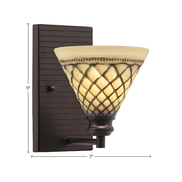Albany 1-Light Espresso 7 in. Wall Sconce with Chocolate Icing Glass Shade