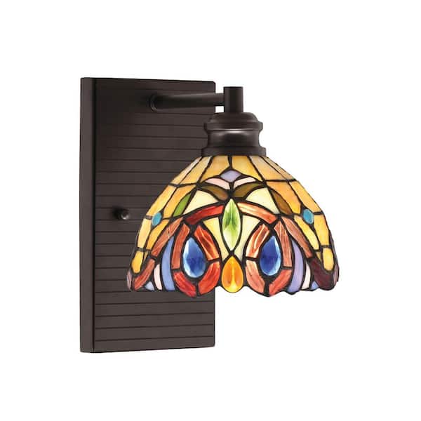 Albany 1-Light Espresso 7 in. Wall Sconce with Lynx Art Glass Shade
