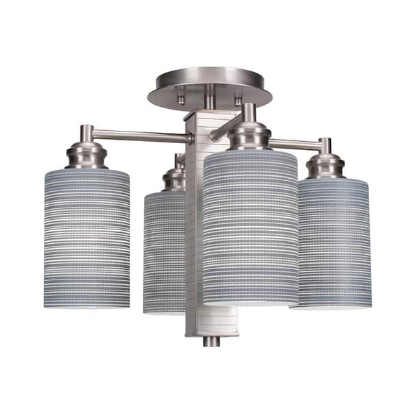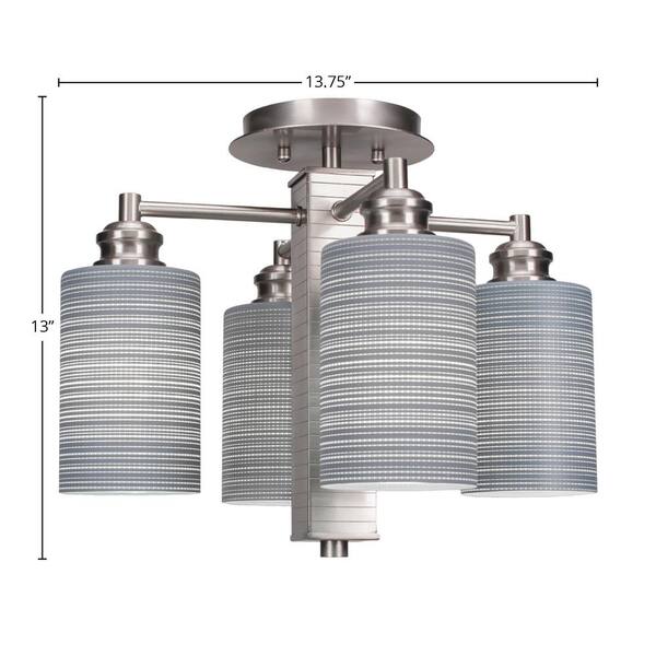 Albany 13.75 in. 4-Light Brushed Nickel Semi-Flush Mount with 4 in. Gray Matrix Glass Shades No Bulbs Included