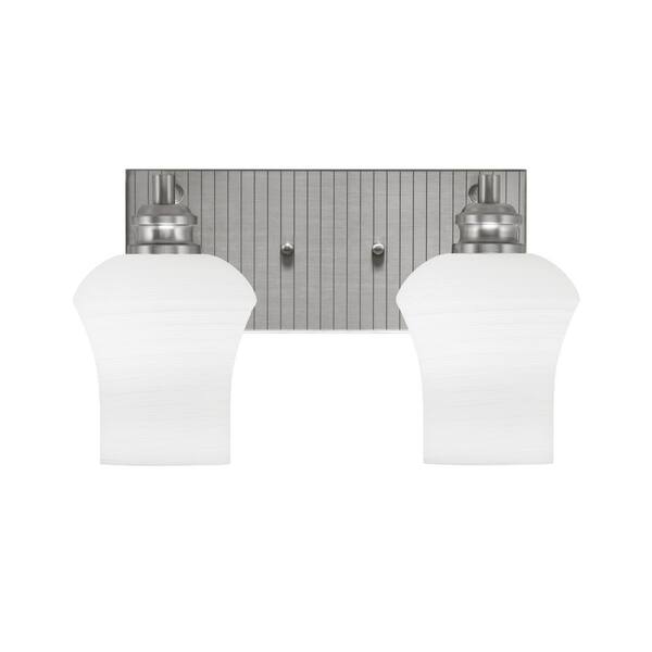 Albany 14.5 in. 2-Light Brushed Nickel Vanity Light with Clevelend White Linen Glass Shades