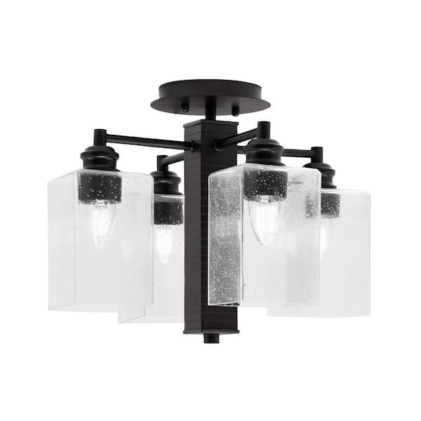 Albany 15.5 in. 4-Light Espresso Semi-Flush with Clear Bubble Glass Shades
