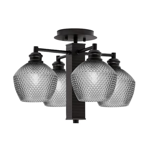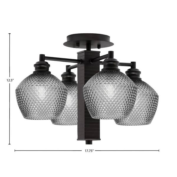 Albany 17.75 in. 4-Light Espresso Semi-Flush with Smoke Textured Glass Shades