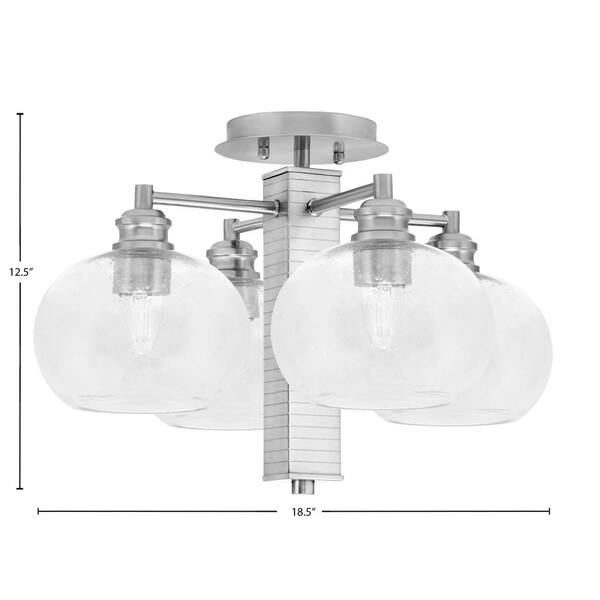 Albany 18.5 in. 4-Light Brushed Nickel Semi-Flush with Clear Bubble Glass Shades