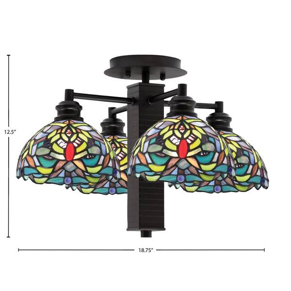 Albany 18.75 in. 4-Light Espresso Semi-Flush with Kaleidoscope Art Glass Shades