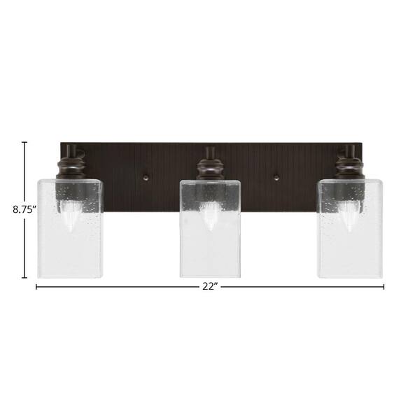 Albany 22 in. 3-Light Espresso Vanity Light with Square Clear Bubble Glass Shades