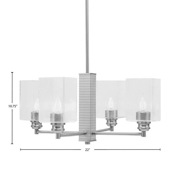 Albany 22 in. 4 Light Brushed Nickel Chandelier with Square Clear Bubble Glass Shades