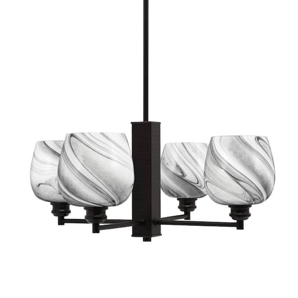 Albany 24 in. 4-Light Espresso Chandelier with Onyx Swirl Glass Shades