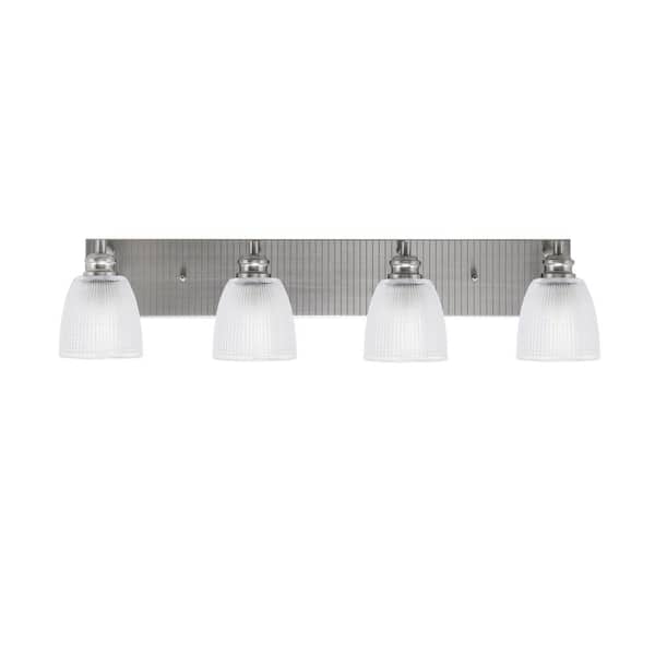Albany 32.5 in. 4-Light Brushed Nickel Vanity Light with Clear Ribbed Glass Shades