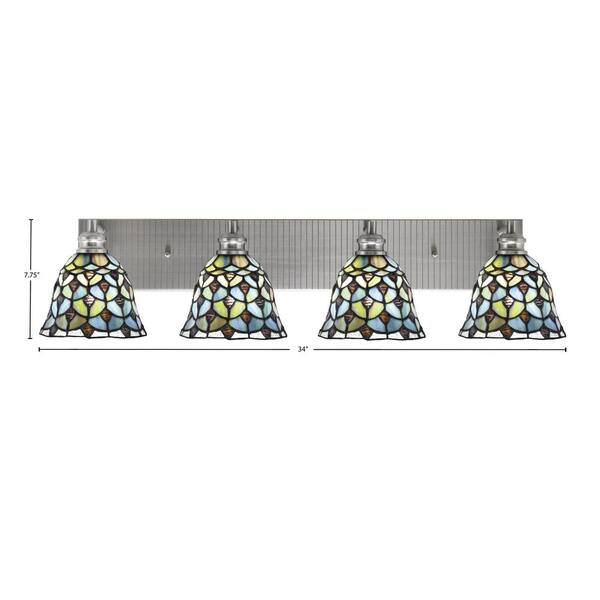 Albany 34 in. 4-Light Brushed Nickel Vanity Light with Crescent Art Glass Shades