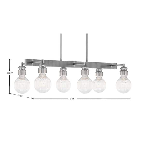 Albany 6 Light Brushed Nickel Downlight Chandelier, Linear Chandelier for the Kitchen with 4 watt LED Bulbs Shades