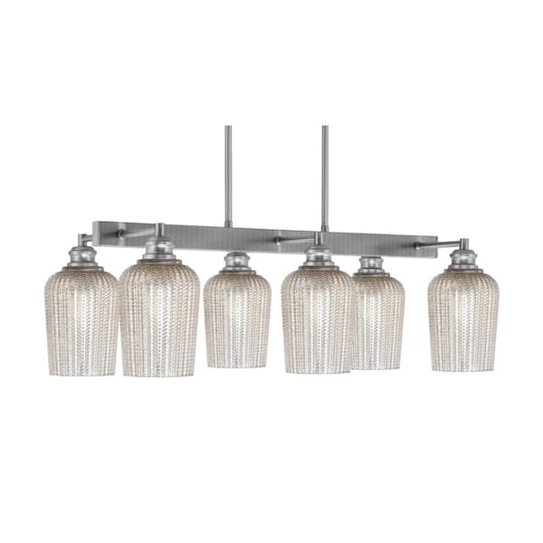 Albany 6 Light Brushed Nickel Downlight Chandelier, Linear Chandelier for the Kitchen with Silver Textured Glass Shades