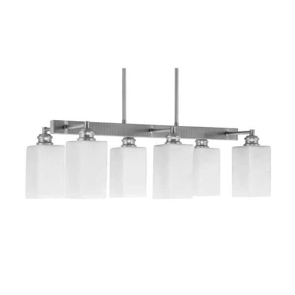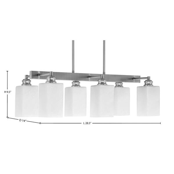 Albany 6 Light Brushed Nickel Downlight Chandelier, Linear Chandelier for the Kitchen with White Muslin Glass Shades