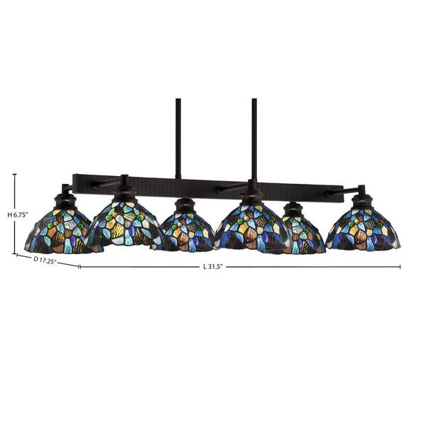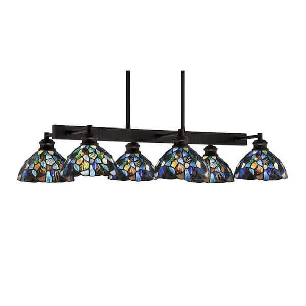 Albany 6 Light Espresso Downlight Chandelier, Linear Chandelier for the Kitchen with Blue Mosaic Art Glass Shades