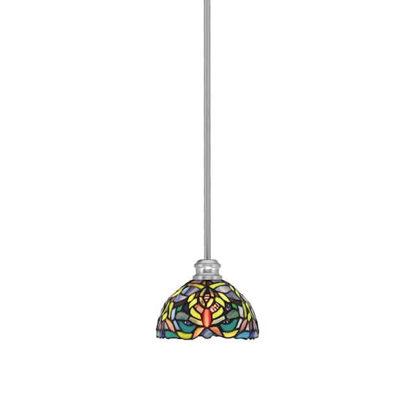 Albany 60-Watt 1-Light Brushed Nickel Pendant Mini Pendant Light Kaleidoscope Art Glass and Light Bulb Not Included