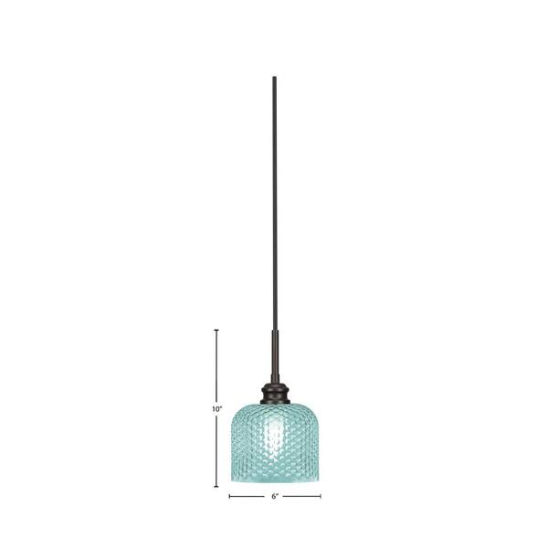 Albany 60-Watt 1-Light Espresso Pendant Mini Pendant Light Turquoise Textured Glass and Light Bulb Not Included
