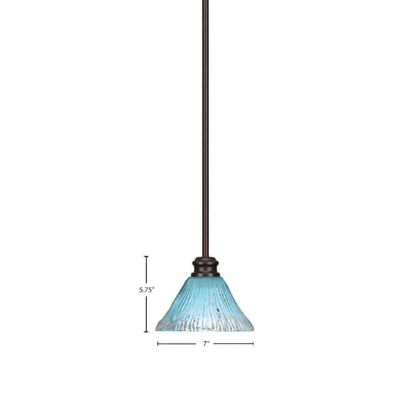 Albany 60-Watt 1-Light Espresso Shaded Pendant Light with Teal Crystal Glass Shade, No Bulbs Included