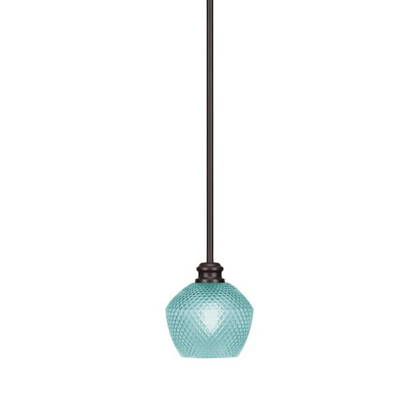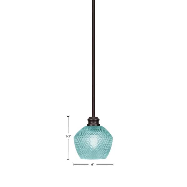 Albany 60-Watt 1-Light Espresso Shaded Pendant Light with Turquoise Textured Glass Shade, No Bulbs Included