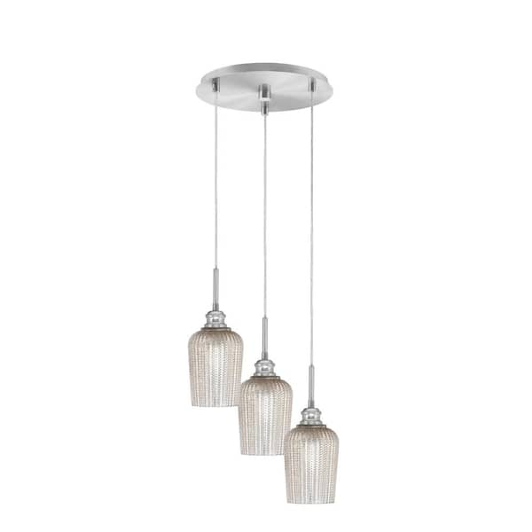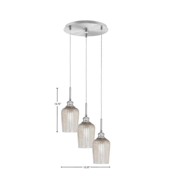 Albany 60-Watt 12.25 in. 3-Light Brushed Nickel Cord Pendant Light Silver Textured Glass Shade