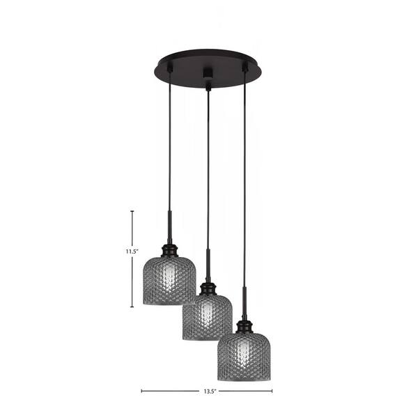 Albany 60-Watt 13.5 in. 3-Light Espresso Cord Pendant Light Smoke Textured Glass Shade