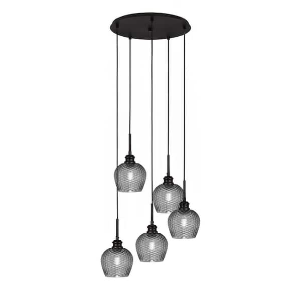 Albany 60-Watt 18.75 in. 5-Light Espresso Cord Pendant Light Smoke Textured Glass Shade No Bulbs included