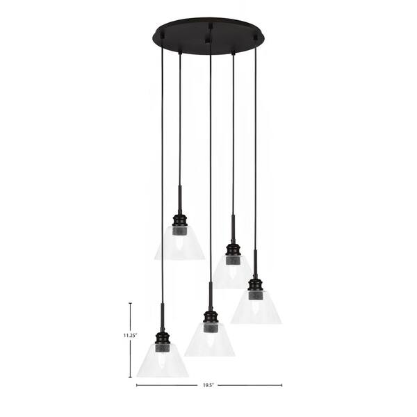 Albany 60-Watt 19.5 in. 5-Light Espresso Cord Pendant Light Clear Bubble Glass Shade No Bulbs included