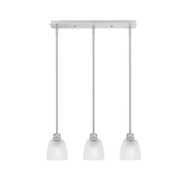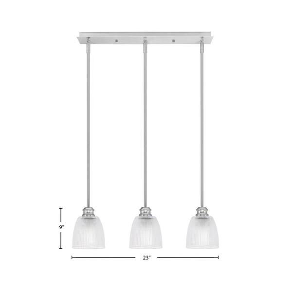 Albany 60-Watt 3-Light Brushed Nickel Linear Pendant Light with Clear Ribbed Glass Shades and No Bulbs Included