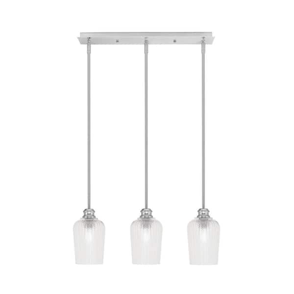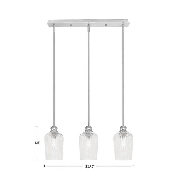 Albany 60-Watt 3-Light Brushed Nickel Linear Pendant Light with Clear Textured Glass Shades and No Bulbs Included