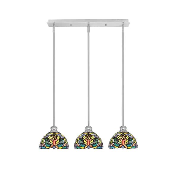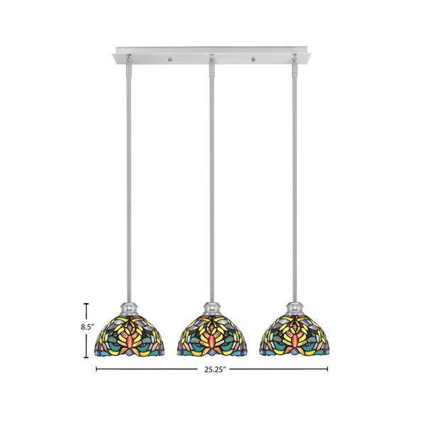 Albany 60-Watt 3-Light Brushed Nickel Linear Pendant Light with Kaleidoscope Art Glass Shades and No Bulbs Included