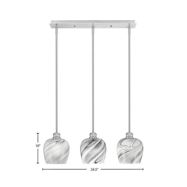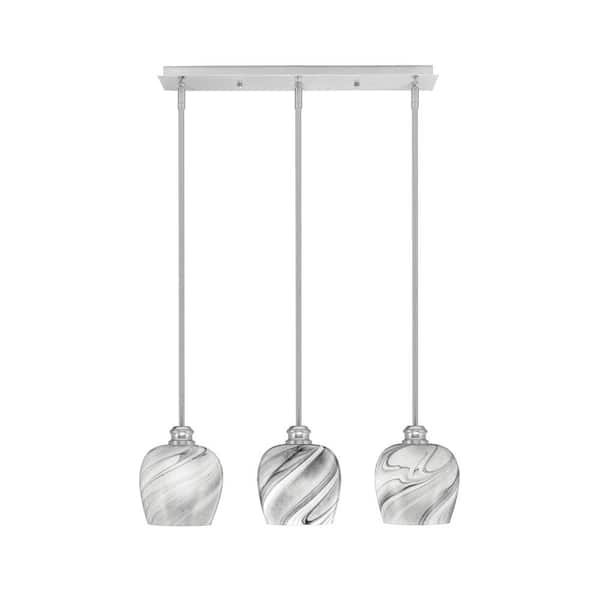 Albany 60-Watt 3-Light Brushed Nickel Linear Pendant Light with Onyx Swirl Glass Shades and No Bulbs Included