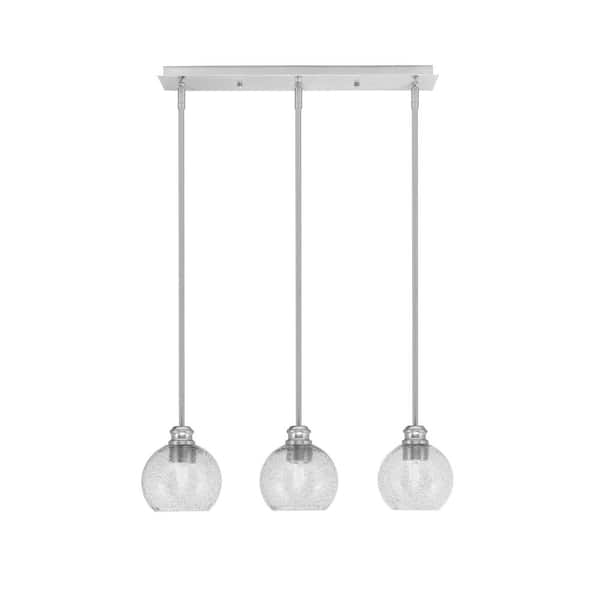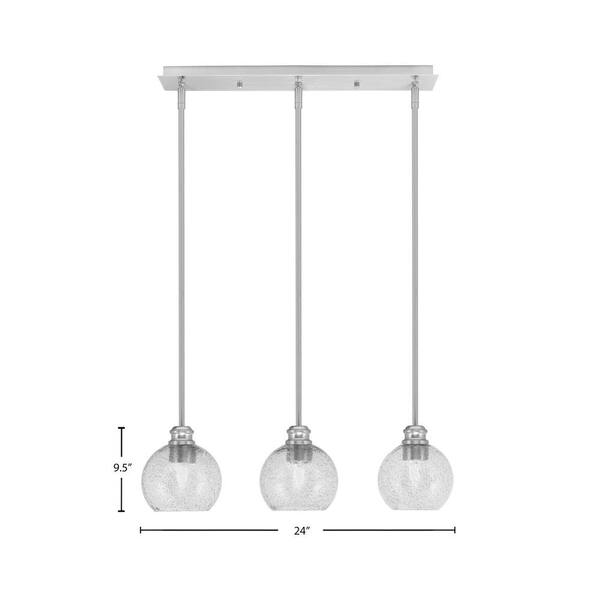 Albany 60-Watt 3-Light Brushed Nickel Linear Pendant Light with Smoke Bubble Glass Shades and No Bulbs Included