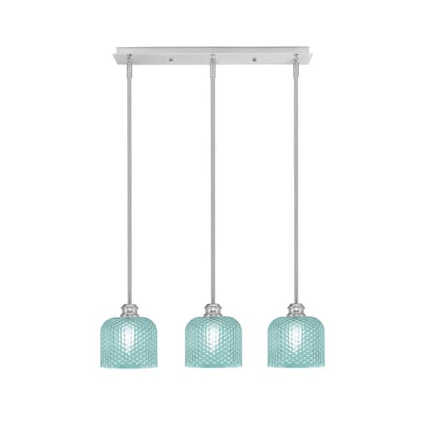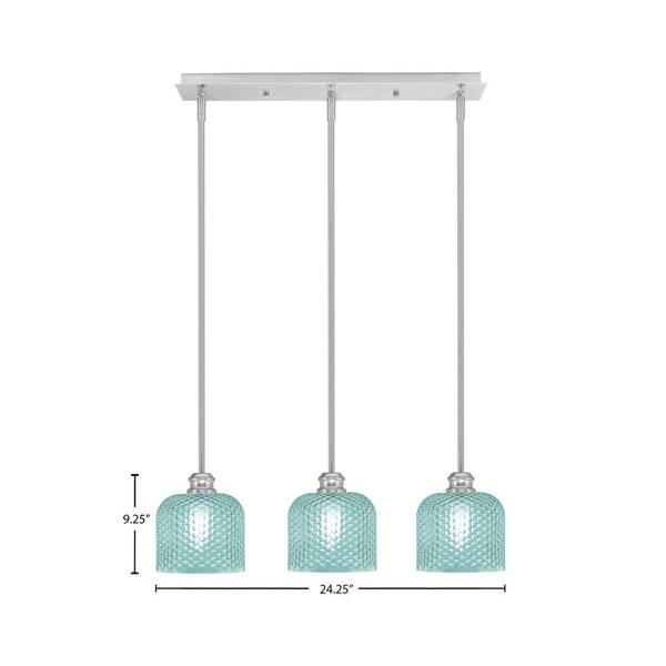 Albany 60-Watt 3-Light Brushed Nickel Linear Pendant Light with Turquoise Textured Glass Shades and No Bulbs Included