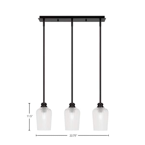 Albany 60-Watt 3-Light Espresso Linear Pendant Light with Clear Textured Glass Shades and No Bulbs Included