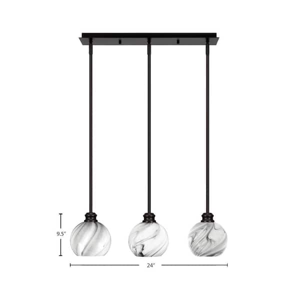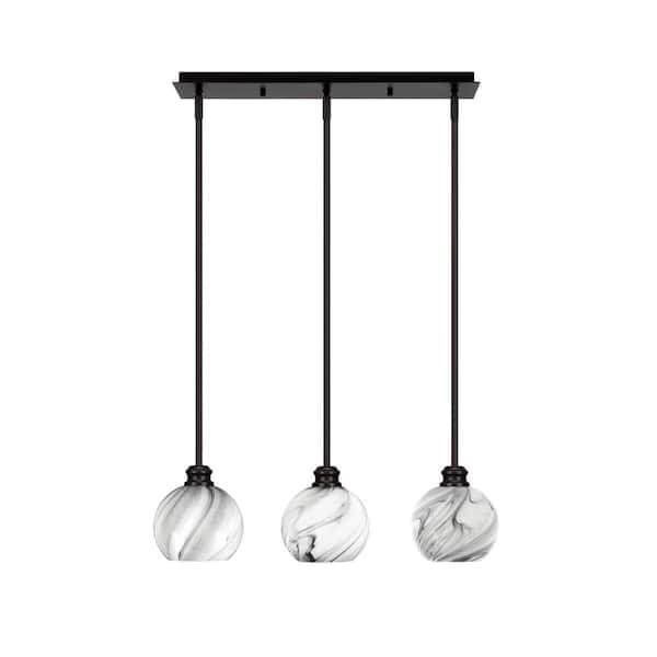 Albany 60-Watt 3-Light Espresso Linear Pendant Light with Onyx Swirl Glass Shades and No Bulbs Included