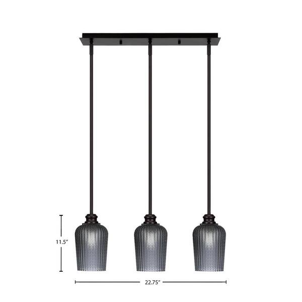 Albany 60-Watt 3-Light Espresso Linear Pendant Light with Smoke Textured Glass Shades and No Bulbs Included