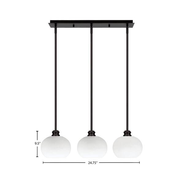 Albany 60-Watt 3-Light Espresso Linear Pendant Light with White Muslin Glass Shades and No Bulbs Included