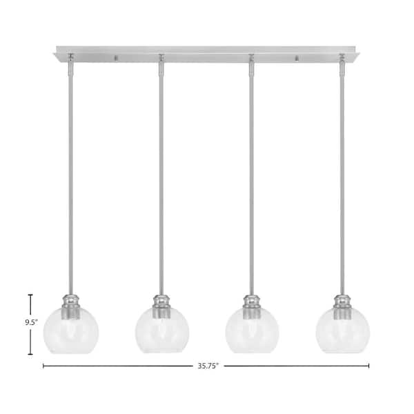 Albany 60-Watt 4-Light Brushed Nickel Linear Pendant Light with Clear Bubble Glass Shades and No Bulbs Included