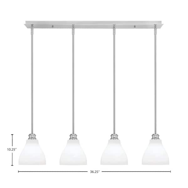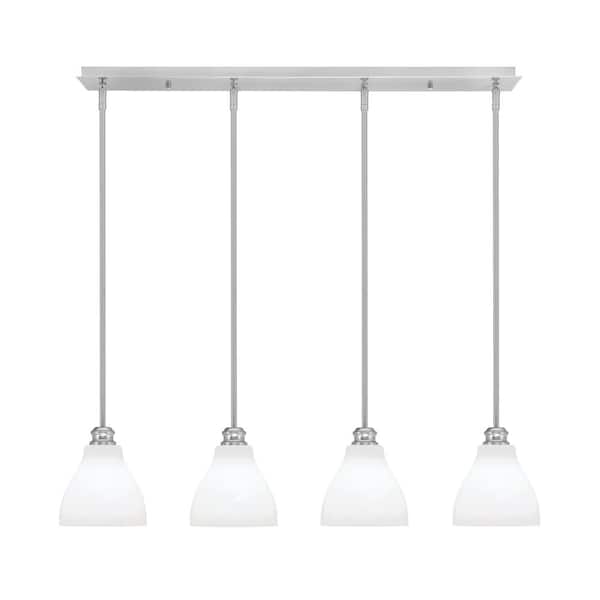 Albany 60-Watt 4-Light Brushed Nickel Linear Pendant Light with White Marble Glass Shades and No Bulbs Included
