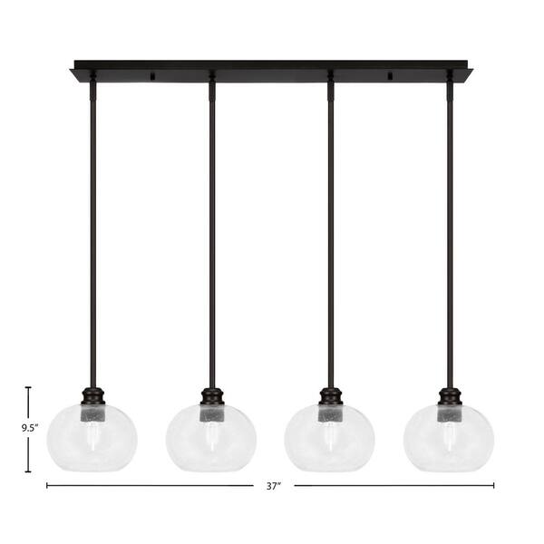 Albany 60-Watt 4-Light Espresso Linear Pendant Light with Clear Bubble Glass Shades and No Bulbs Included