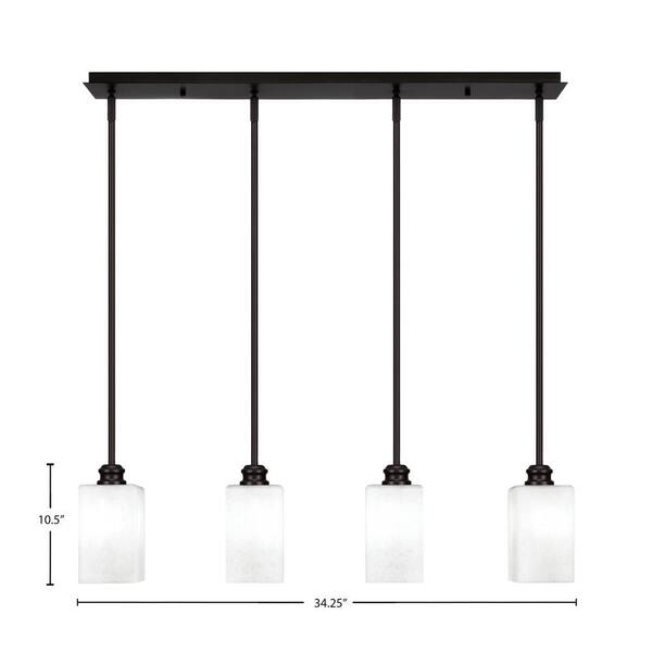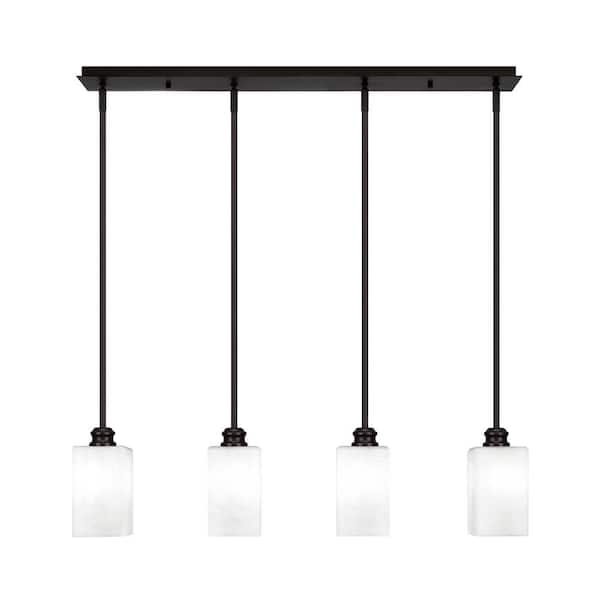 Albany 60-Watt 4-Light Espresso Linear Pendant Light with Square White Muslin Glass Shades and No Bulbs Included