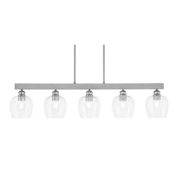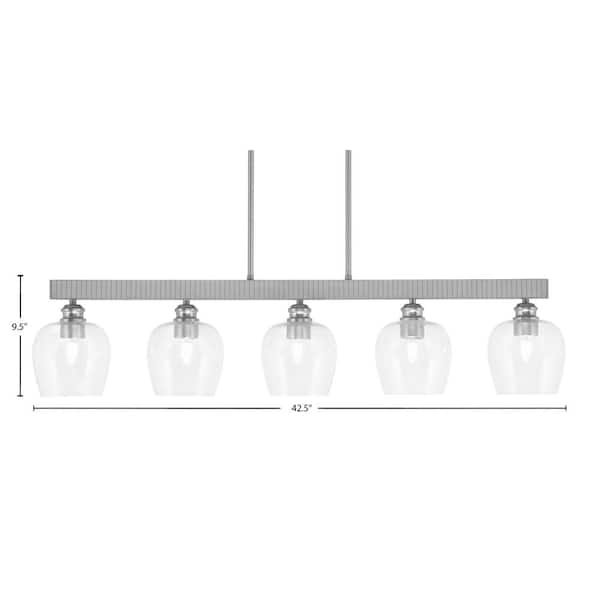 Albany 60-Watt 5-Light Brushed Nickel Linear Pendant Light with Clear Bubble Glass Shades and No Bulbs Included