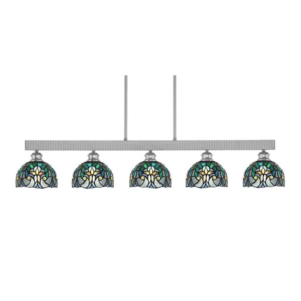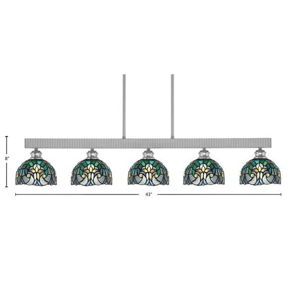 Albany 60-Watt 5-Light Brushed Nickel Linear Pendant Light with Cypress Art Glass Shades and No Bulbs Included